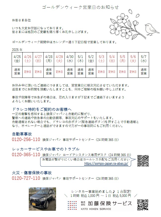 GW休暇のお知らせ